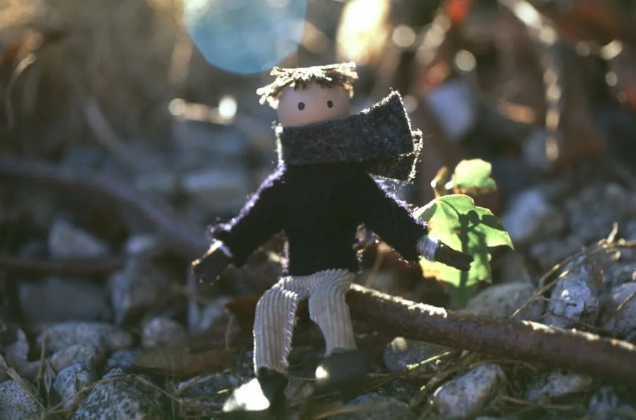 In 2000, before we had a publisher, we put out a set of postcards with pictures from Windy and we sold them at Eugene Choo and Dream in Vancouver. We included in the set two snapshots of Windy and Sunny posed sitting on logs (well, sticks really). We called the two pictures "Windy in the countryside" and "Sunny in the countryside". But it's funny, when we came across the old digital files, they were called "sensitive_windy.jpg" and "sensitive_sunny.jpg". We named them that because we thought they looked like "sensitive" folky musicians, especially with the lens flare. This was a joke we had forgotten until the files showed up.